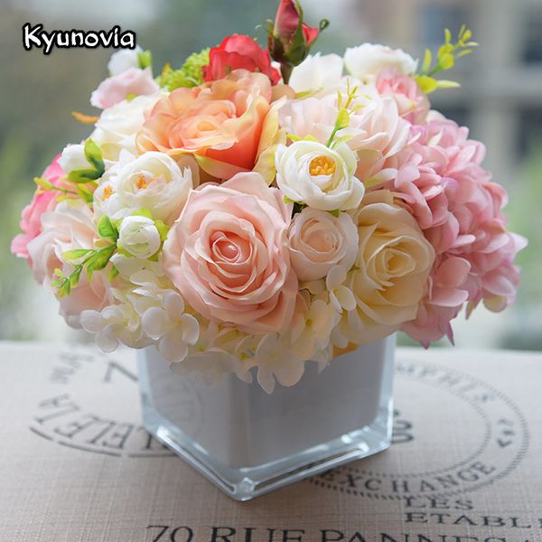 2019 Kyunovia Artificial Hydrangea Berries Rose Vase With Flower Bouquet Set For Desk Office Home Wedding Flowers Decoration Ky58 From Prettyxiu